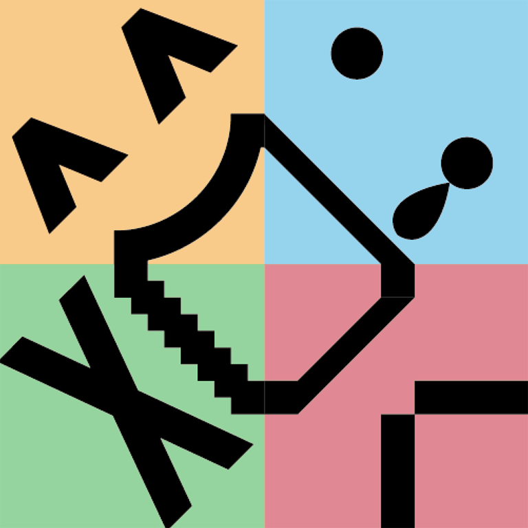図形と色のみで感情表情を示すデザイン。たたむことができるバンダナの特性を活かし、4つにそれぞれのテーマを与えている。